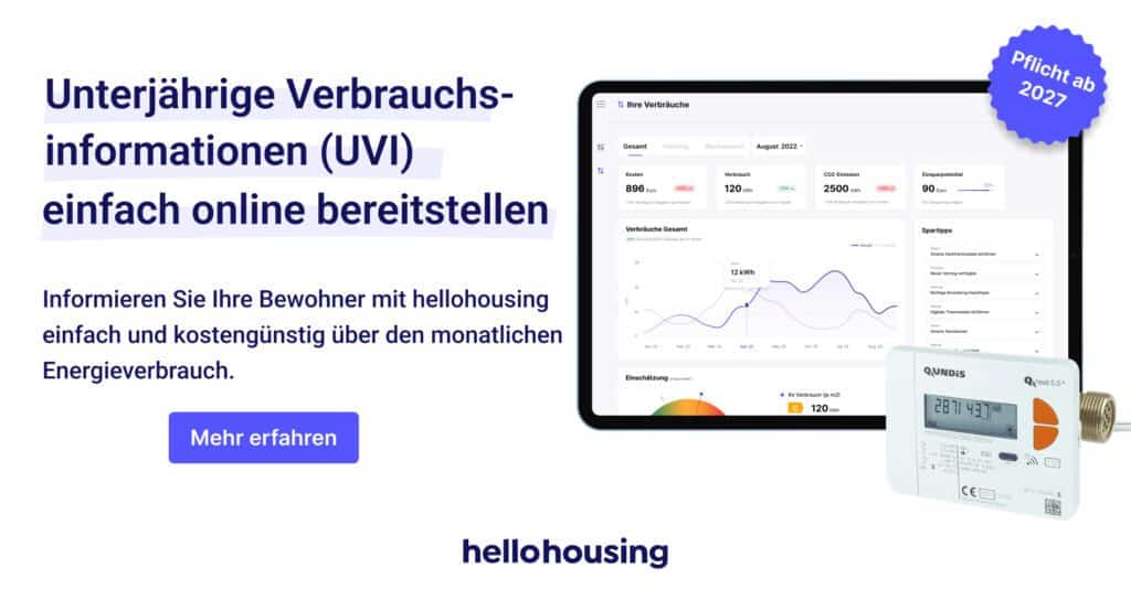 hellohousing macht Immobilienverwaltung digital – Hausverwaltungssoftware mit einem Mieterportal, das Verbrauchsinformationen (UVI) jederzeit zugänglich macht.